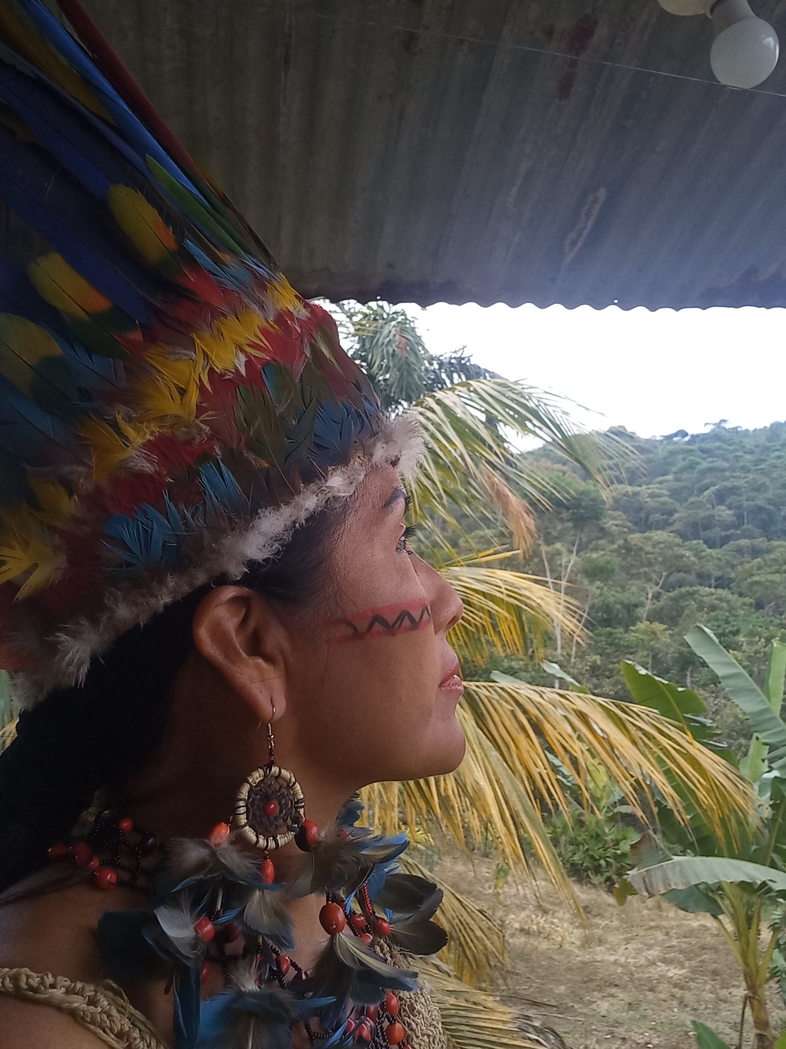 Es un objeto sagrado creado para el chamán con chambiara cumare y variedades de plumas silvestres